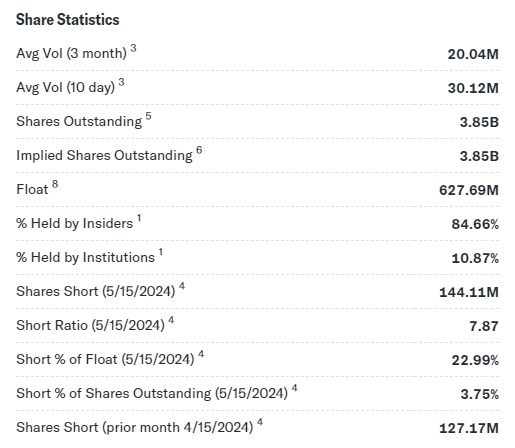 The second thing that stands out is a significant amount of short interest at an estimated 20.7% of the float. (See bull and bear cases below)
